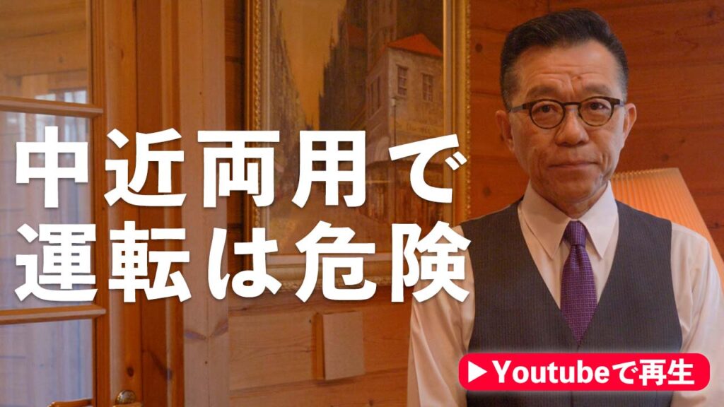 中近両用メガネでの運転は非常に危険です。